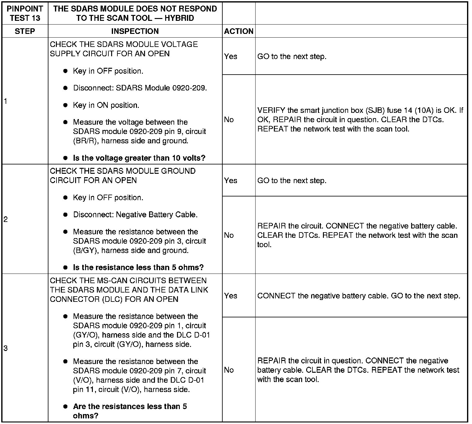 PINPOINT TEST 13: THE SATELLITE DIGITAL AUDIO RECEIVER SYSTEM (SDARS) MODULE DOES NOT RESPOND TO THE SCAN TOOL - HYBRID