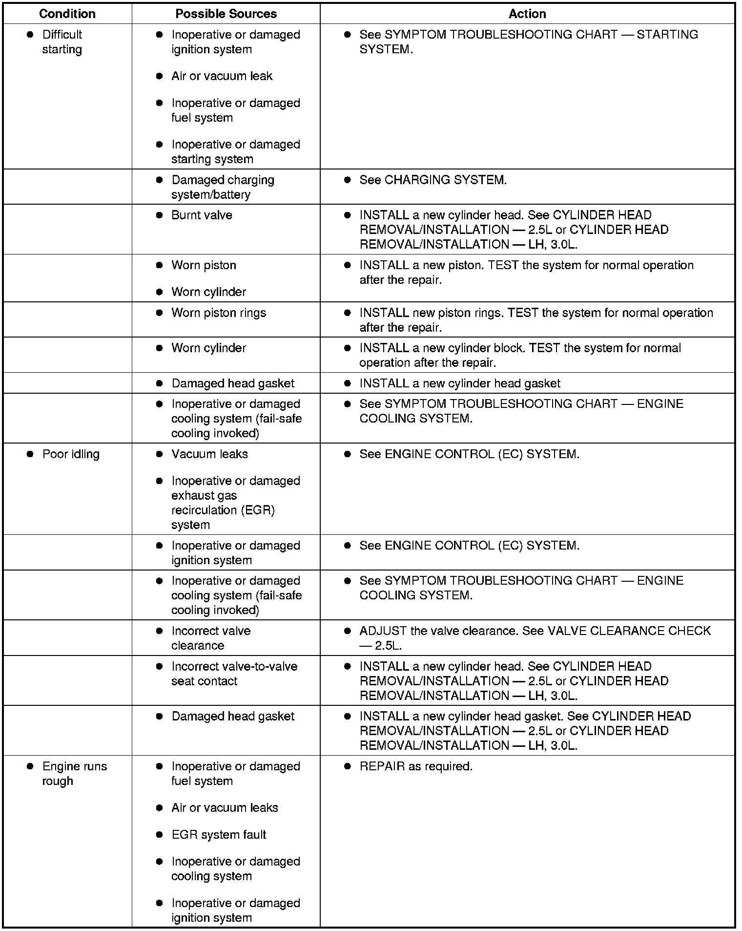 SYMPTOM TROUBLESHOOTING CHART - ENGINE