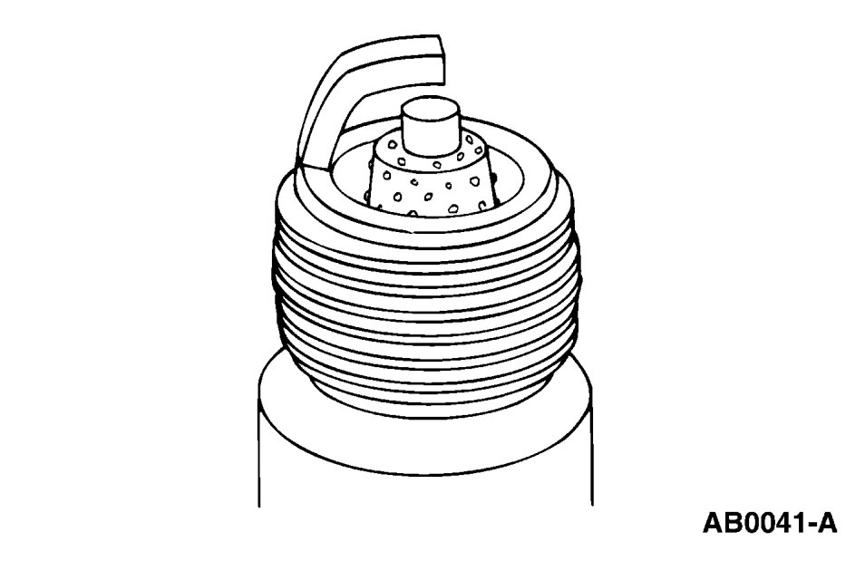 5. Inspect for pre-ignition, identified by melted electrodes and a possibly damaged insulator. Metallic deposits on the insulator indicate engine damage. This may be caused by incorrect ignition timing, wrong type of fuel or the unauthorized installation of a heli-coil insert in place of the spark plug threads.