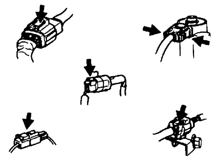 - Connectors can be disconnected by pressing or pulling the lock lever as shown.