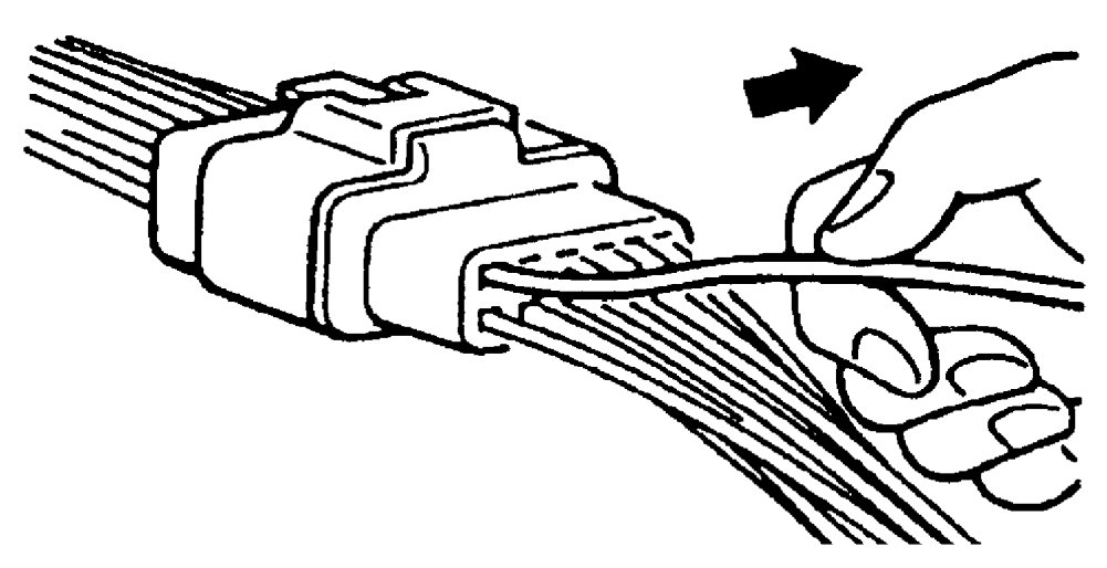 - Insert a thin piece of metal from the terminal side of the connector and with the terminal locking tab pressed down, pull the terminal out from the connector.