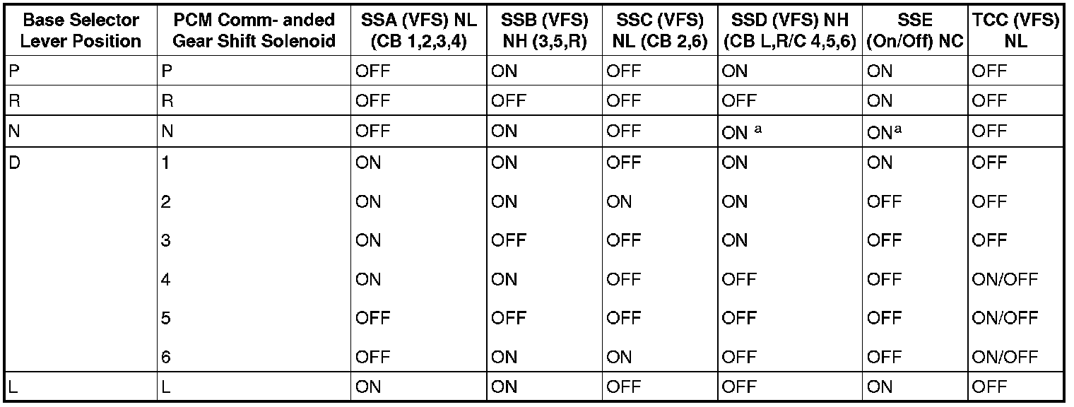 CAUTION:Do not use water-based cleaners to clean or flush the cooler tubes or transmission damage will occur. Mineral spirits can be used to clean the cooler tubes, providing the cooler tubes are flushed with clean automatic transmission fluid and blown dry with shop air. Use only clean automatic transmission fluid designated for the transmission and torque converter being serviced. Solenoid Operation Chart