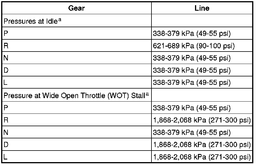 Line Pressure Chart