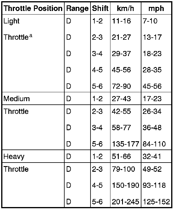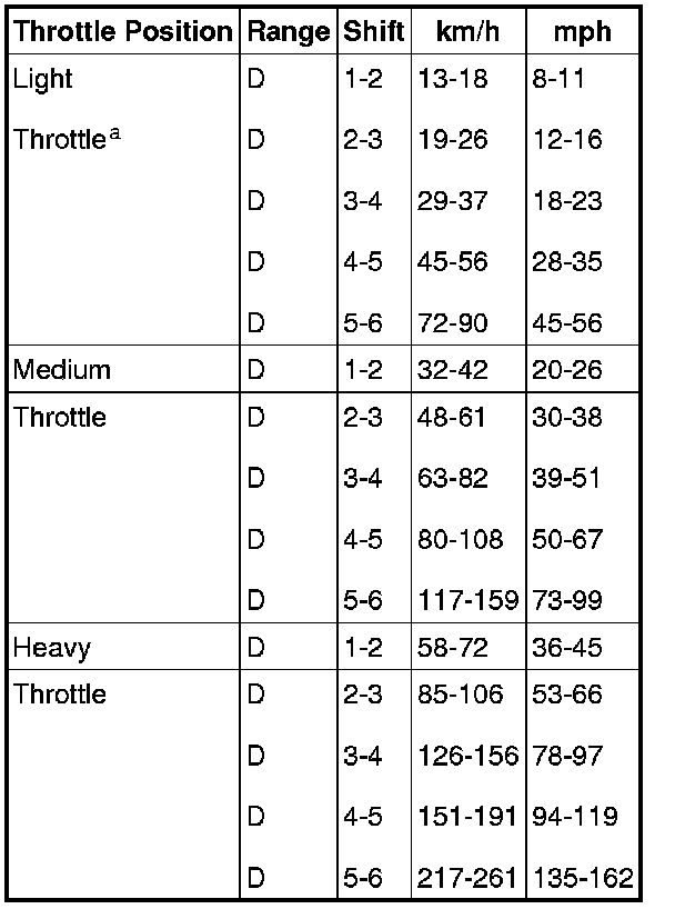 a Do not exceed the speed limit.Shift Speeds - 3.0L