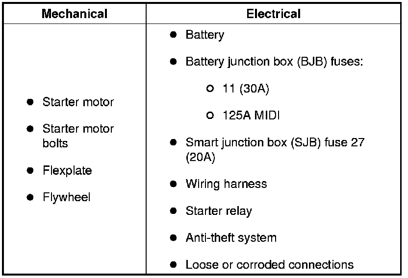 NOTE:The anti-theft system must be functioning correctly before a logical starting system diagnosis can be carried out. Address anti-theft system concerns before continuing.