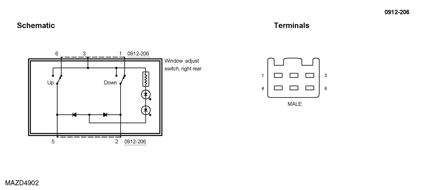 2. Inspect for continuity between the window control switch terminals using a self-powered test light or an ohmmeter.