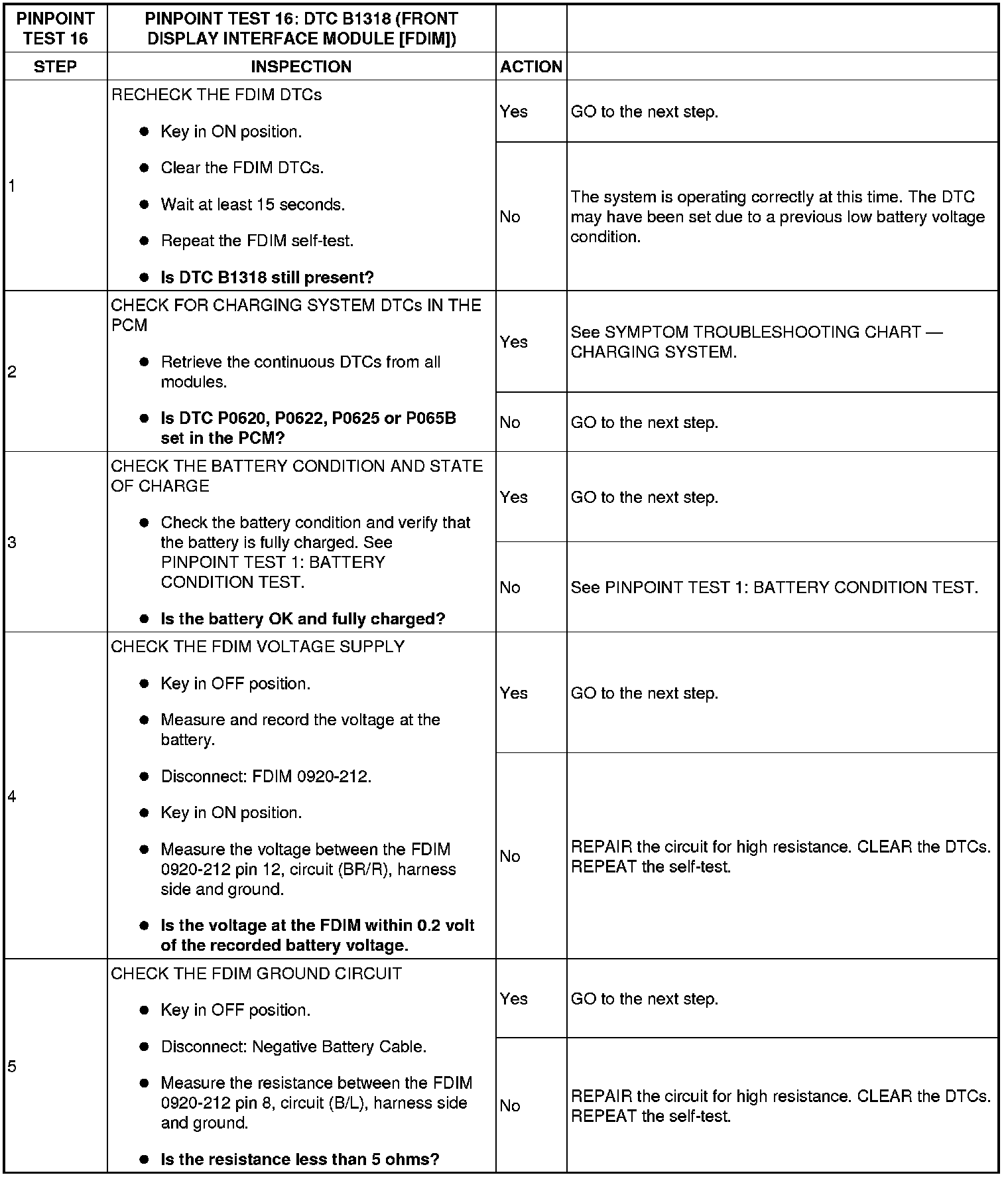 Pinpoint Test 16: DTC B1318 (Front Display Interface Module - FDIM)