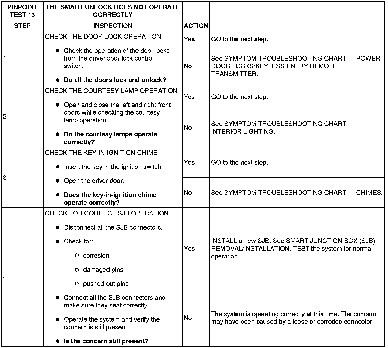 PINPOINT TEST 13: THE SMART UNLOCK DOES NOT OPERATE CORRECTLY
