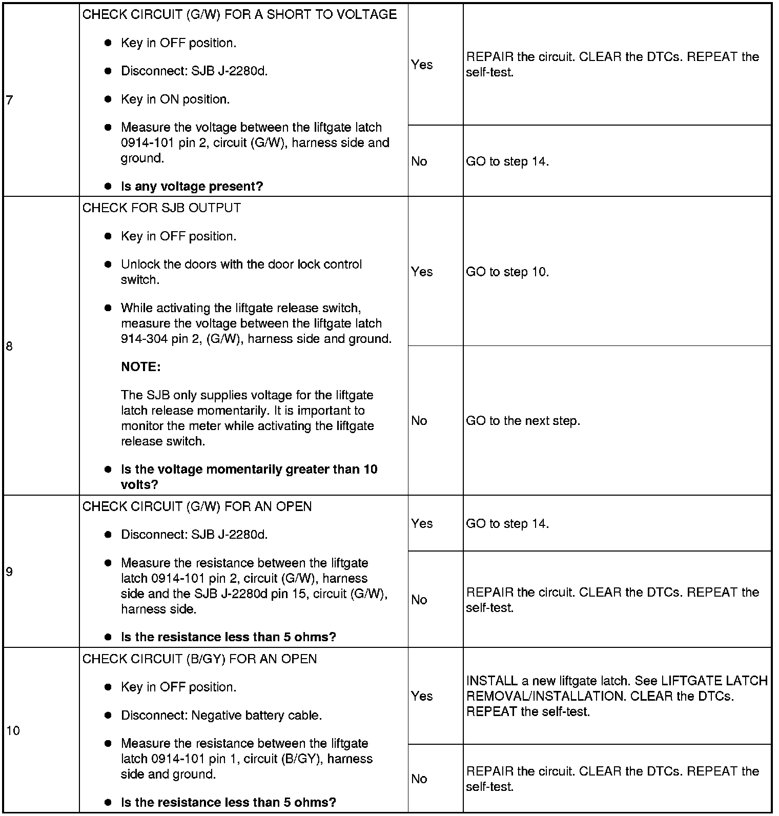 PINPOINT TEST 6: THE LIFTGATE LATCH RELEASE IS INOPERATIVE/DOES NOT OPERATE CORRECTLY
