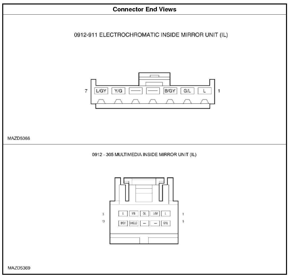 CONNECTOR END VIEWS - INTERIOR REAR VIEW MIRROR