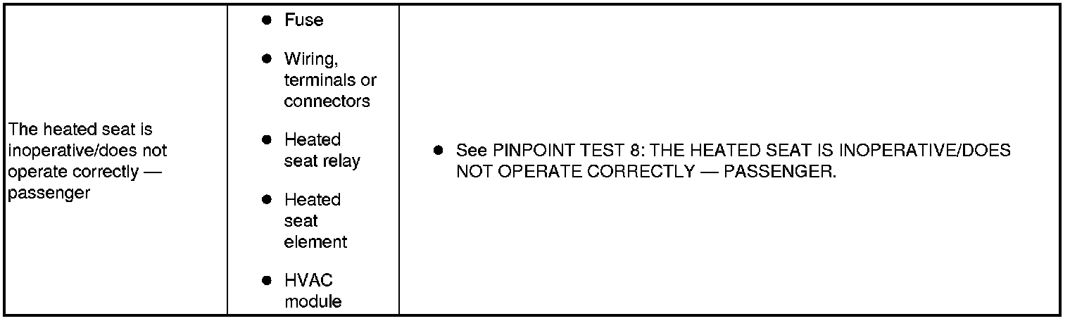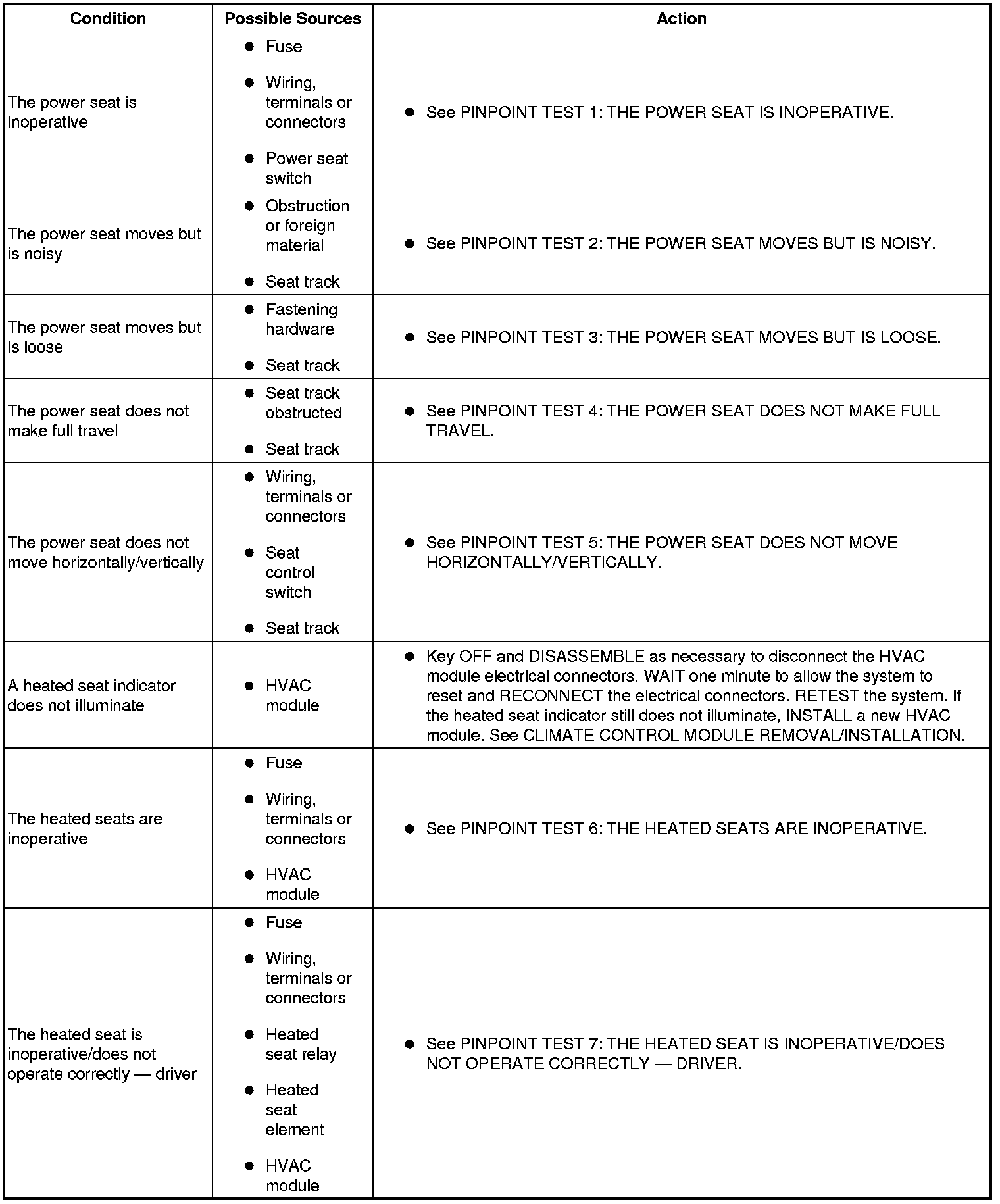 SYMPTOM TROUBLESHOOTING CHART - POWER SEAT