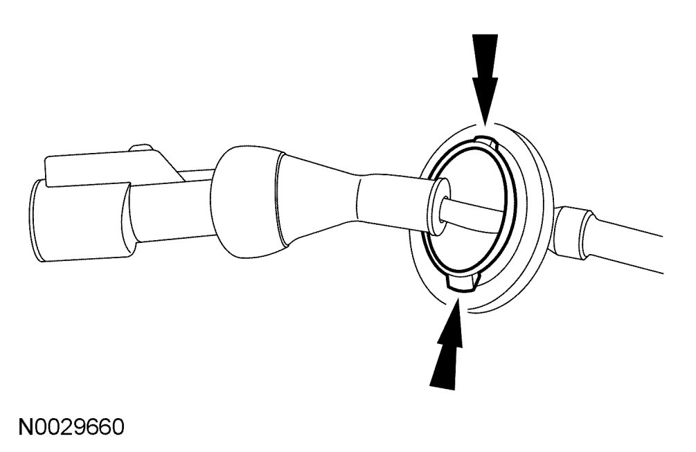 - When removing the body grommet, rotate the grommet into a position which allows the use of a small screwdriver to release the tabs on the underside of the body grommet. These 2 tabs are located at right angles to the sensor wire.