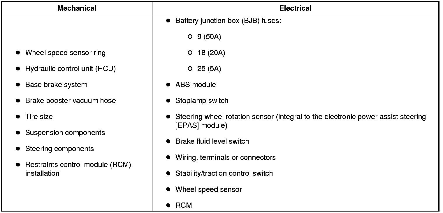 11. If the DTCs retrieved are related to the concern, see Anti-Lock Brake System (ABS) - DTC Chart. For all other DTCs, see - Diagnostic Trouble Code (DTC) Chart - B, C And U Codes.