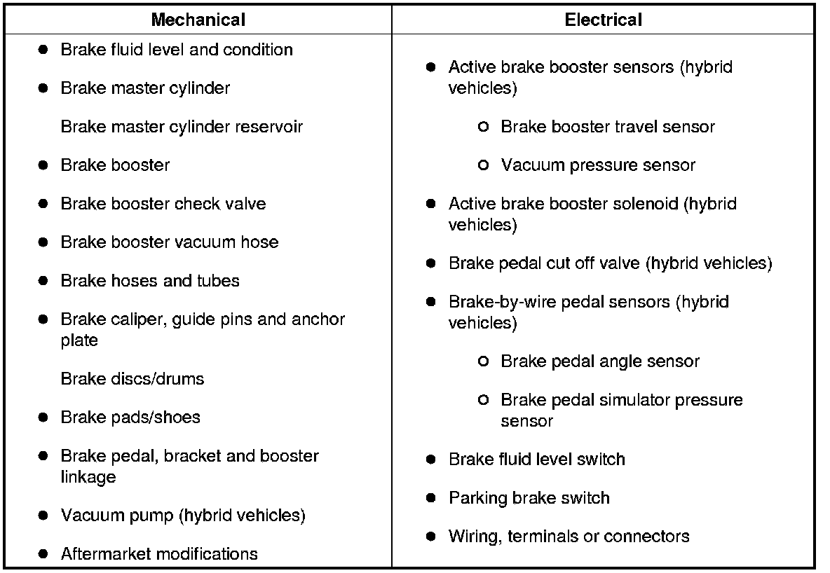- For active brake booster (hybrid vehicles) concerns, see - Service and Repair.