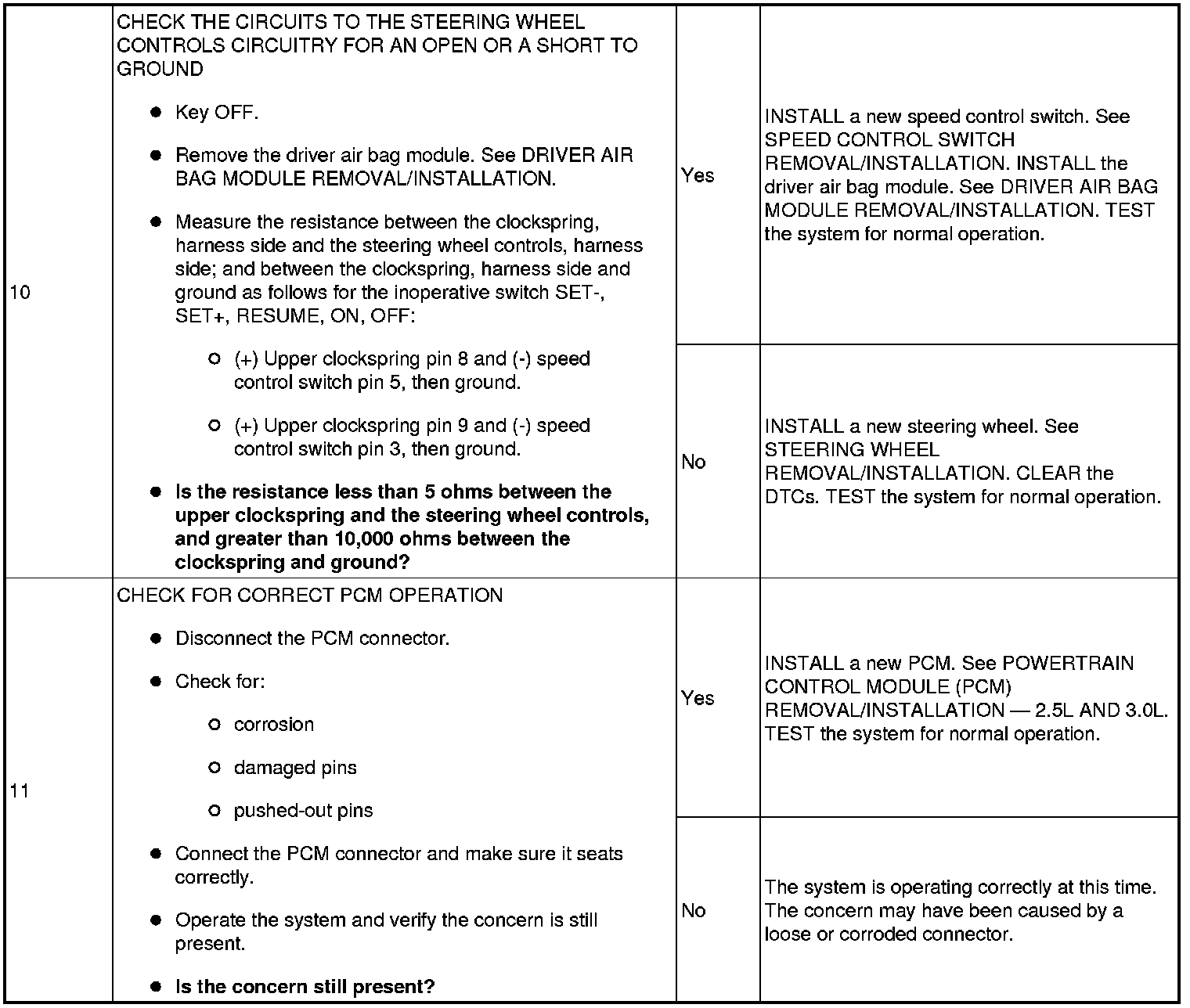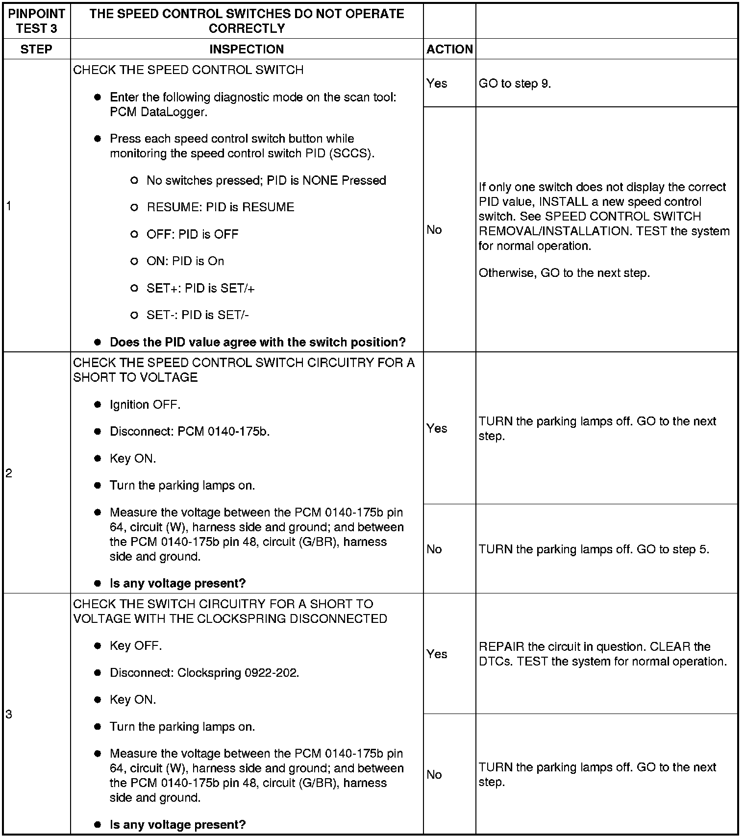 PINPOINT TEST 3: THE SPEED CONTROL SWITCHES DO NOT OPERATE CORRECTLY