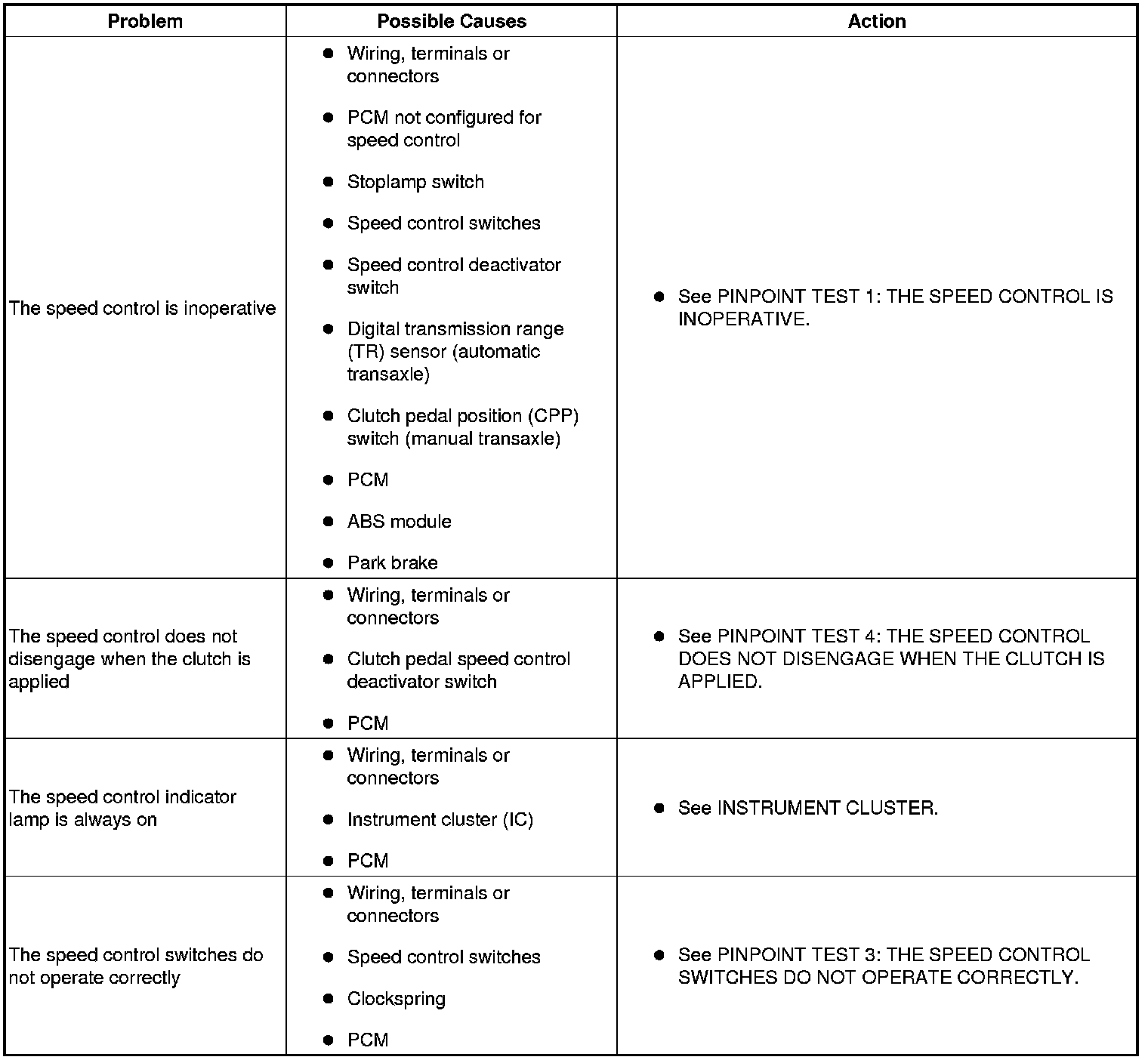 SYMPTOM TROUBLESHOOTING CHART - SPEED CONTROL