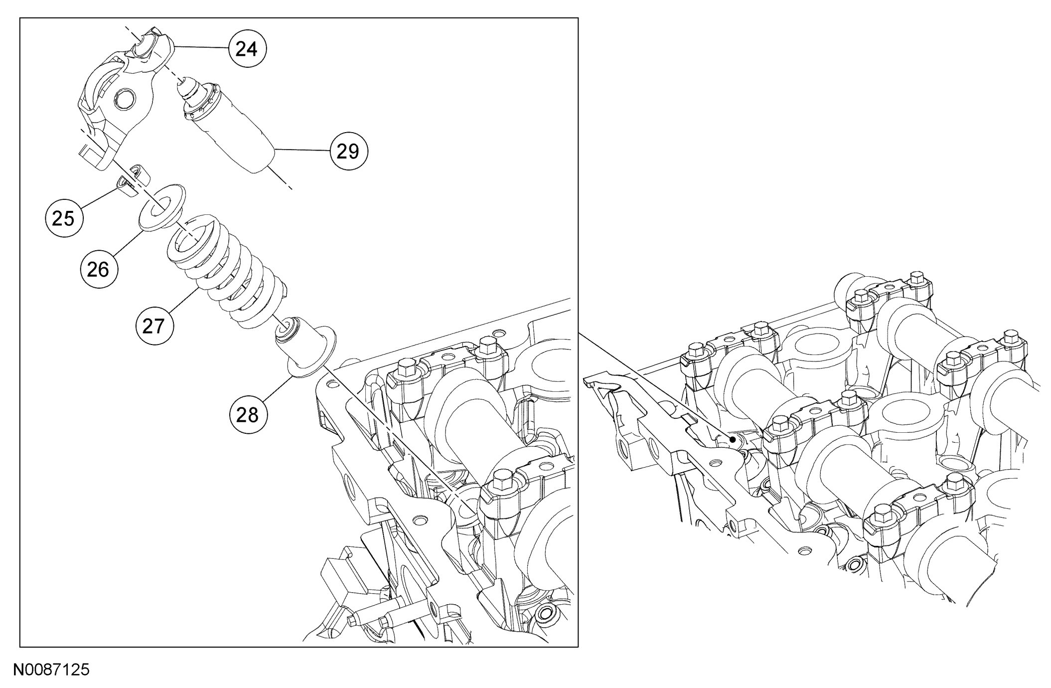 LH Side Roller Follower, Hydraulic Lash Adjuster and Valve Spring