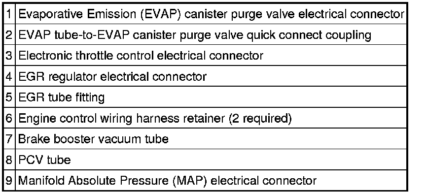9. Disconnect the Manifold Absolute Pressure (MAP) electrical connector and detach the wiring retainer.