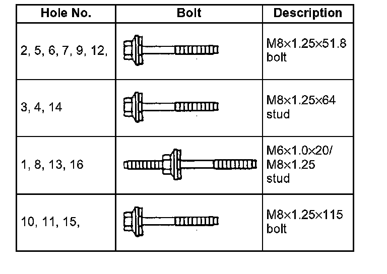 2. Tighten the bolts and studs in the order indicated in the figure.