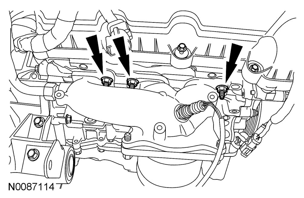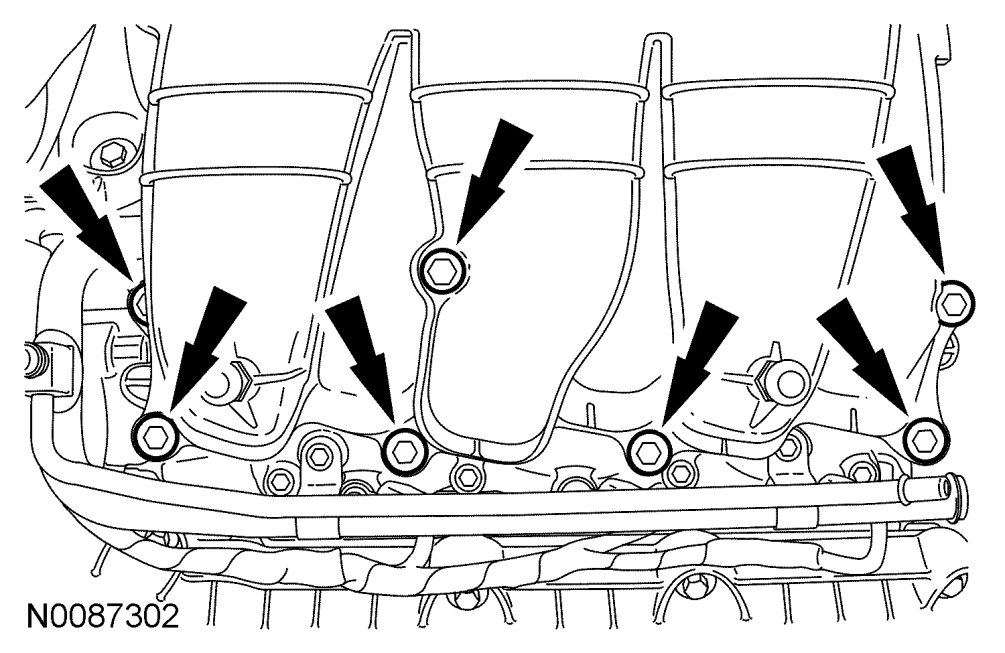 CAUTION:If the engine is repaired or replaced because of upper engine failure, typically including valve or piston damage, check the intake manifold for metal debris. If metal debris is found, install a new intake manifold. Failure to follow these instructions can result in engine damage.