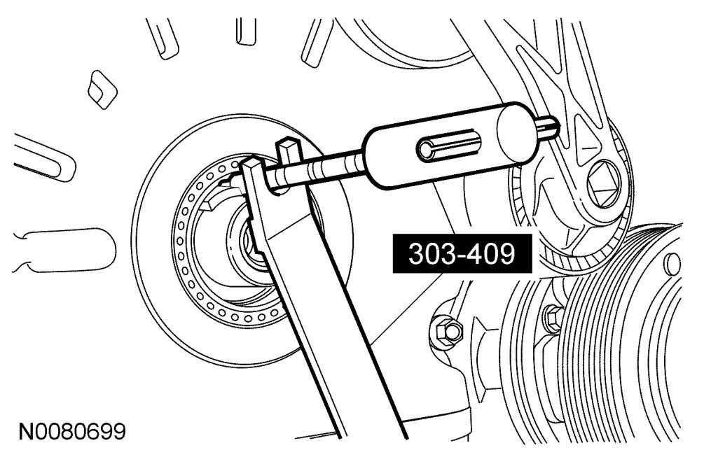 CAUTION:Failure to use the correct special tools, assembled as shown in the illustration, will result in damage to the coolant pump pulley and/or special tools.