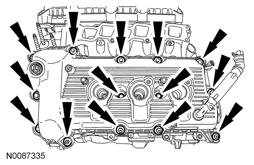 59. Loosen the bolts in the indicated sequence and remove the LH and RH cylinder heads.