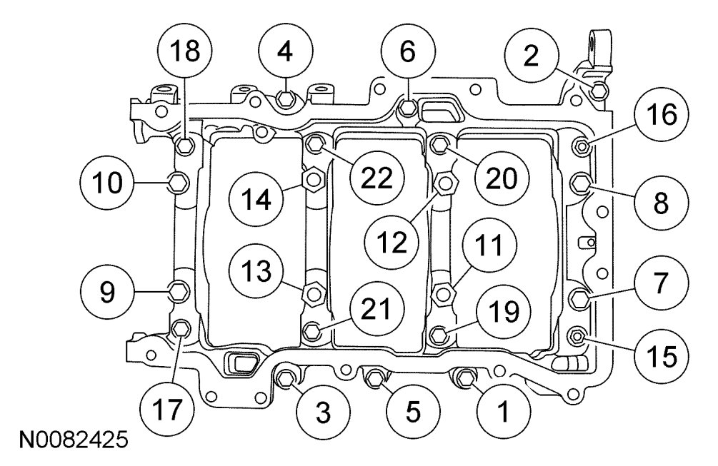 56. Loosen the bolts evenly in the sequence shown.