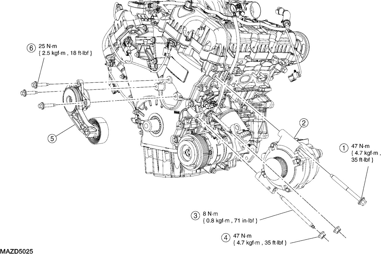 - Tighten to 25 Nm {2.5 kgf-m, 18 ft-lbf}.