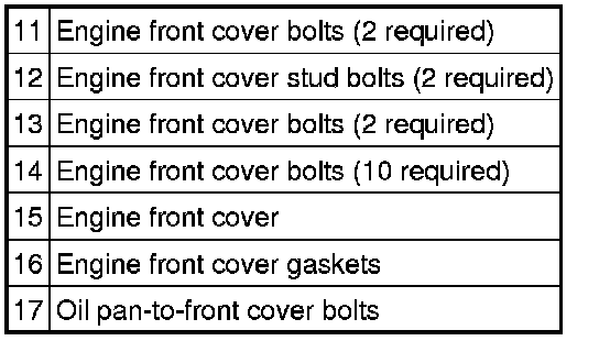 NOTE:The engine front cover must be installed and the bolts tightened within 4 minutes of applying sealant.