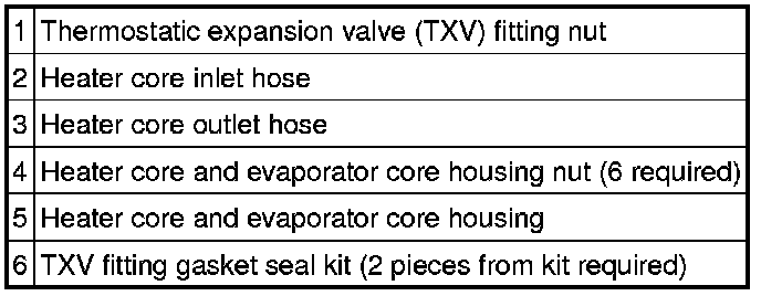 NOTE:If a heater core leak is suspected, the heater core must be leak tested before the heater core is removed. See - Testing and Inspection.