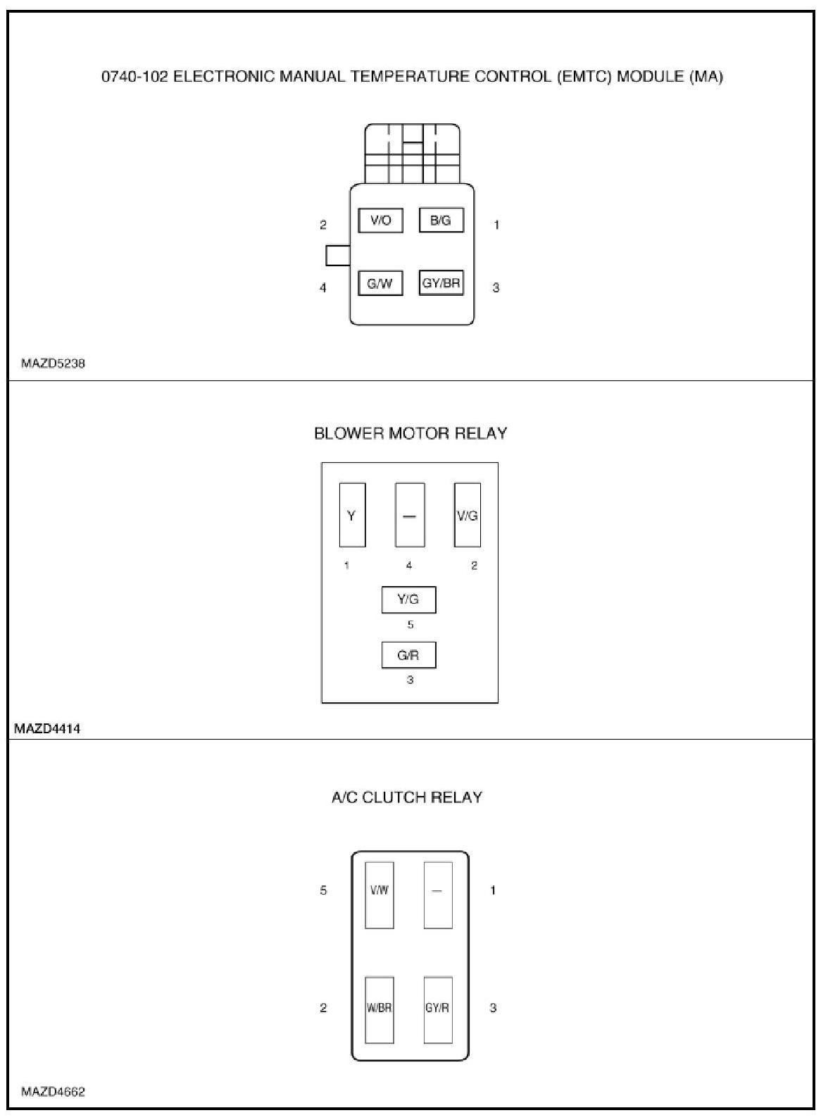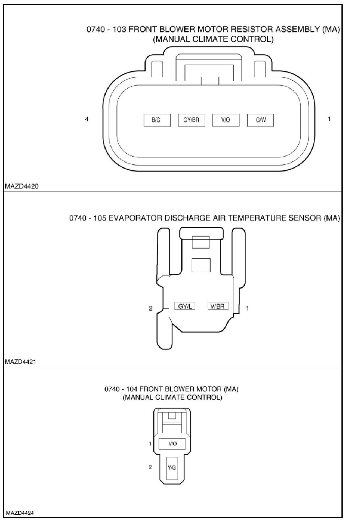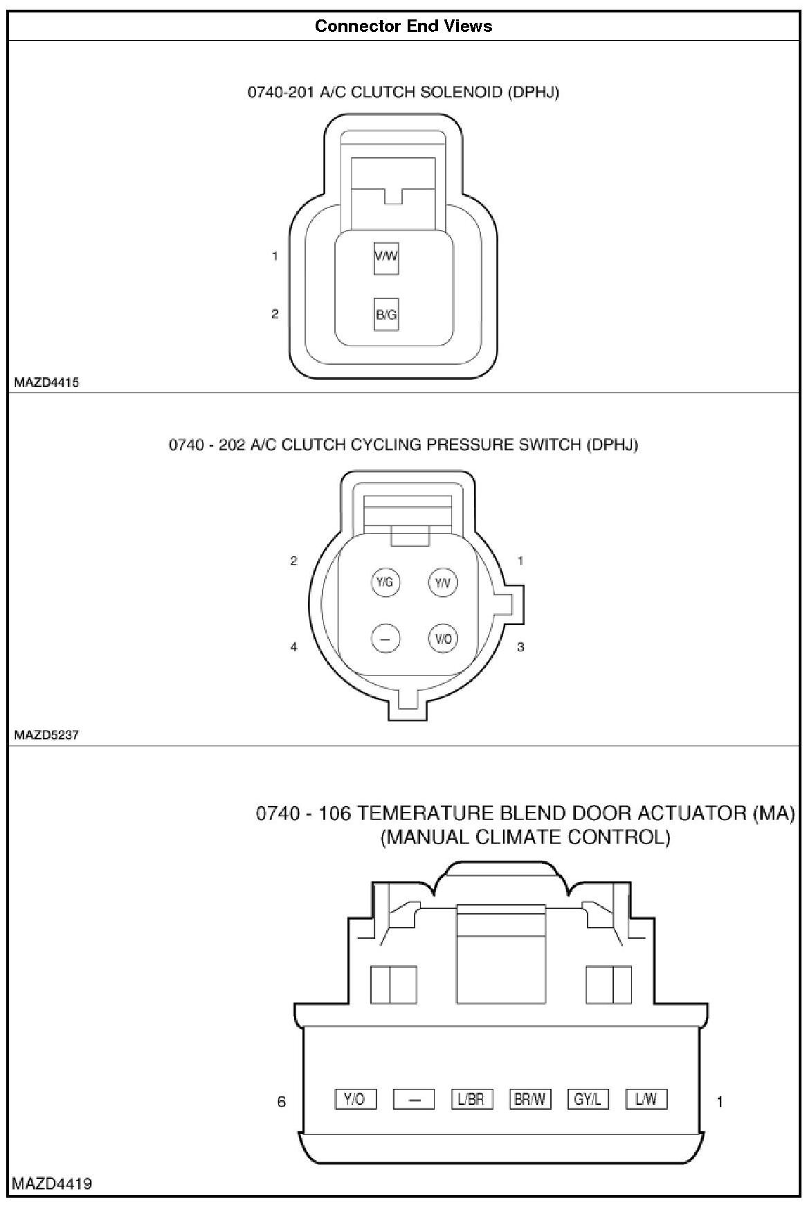 CONNECTOR END VIEWS - MANUAL CLIMATE CONTROL