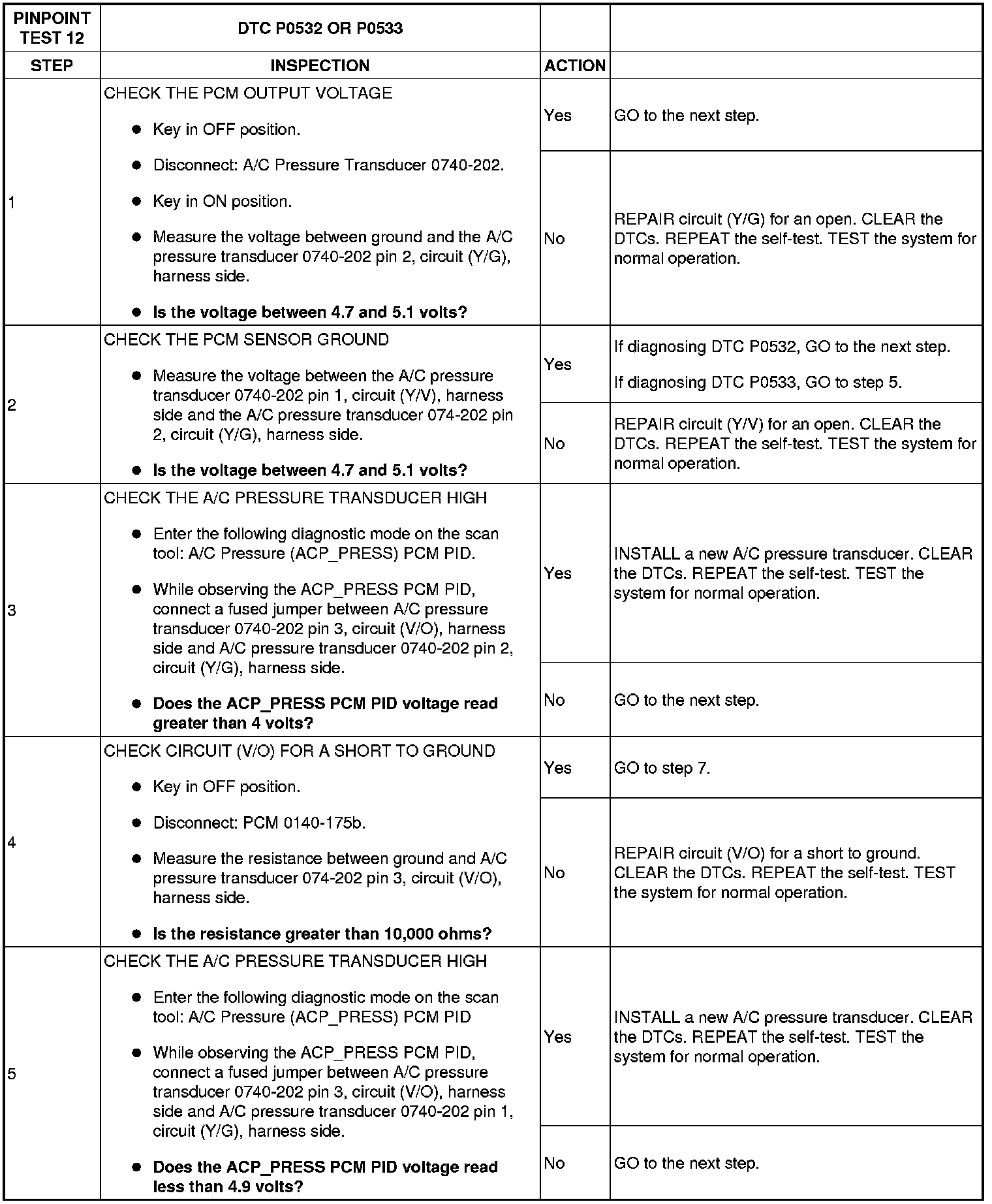 PINPOINT TEST 12: DTC P0532 OR P0533