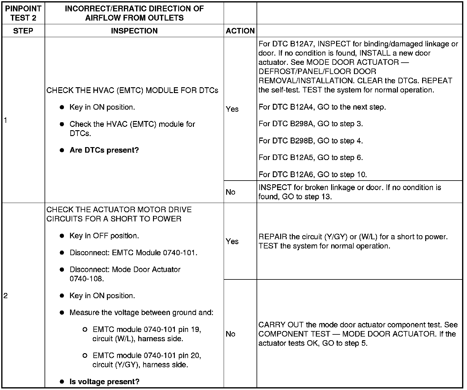 Pinpoint Test 2: Incorrect/Erratic Direction Of Airflow From Outlets