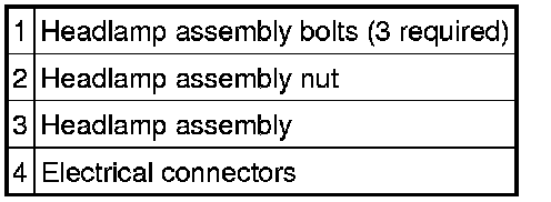 3. Remove the headlamp assembly nut and the headlamp assembly.