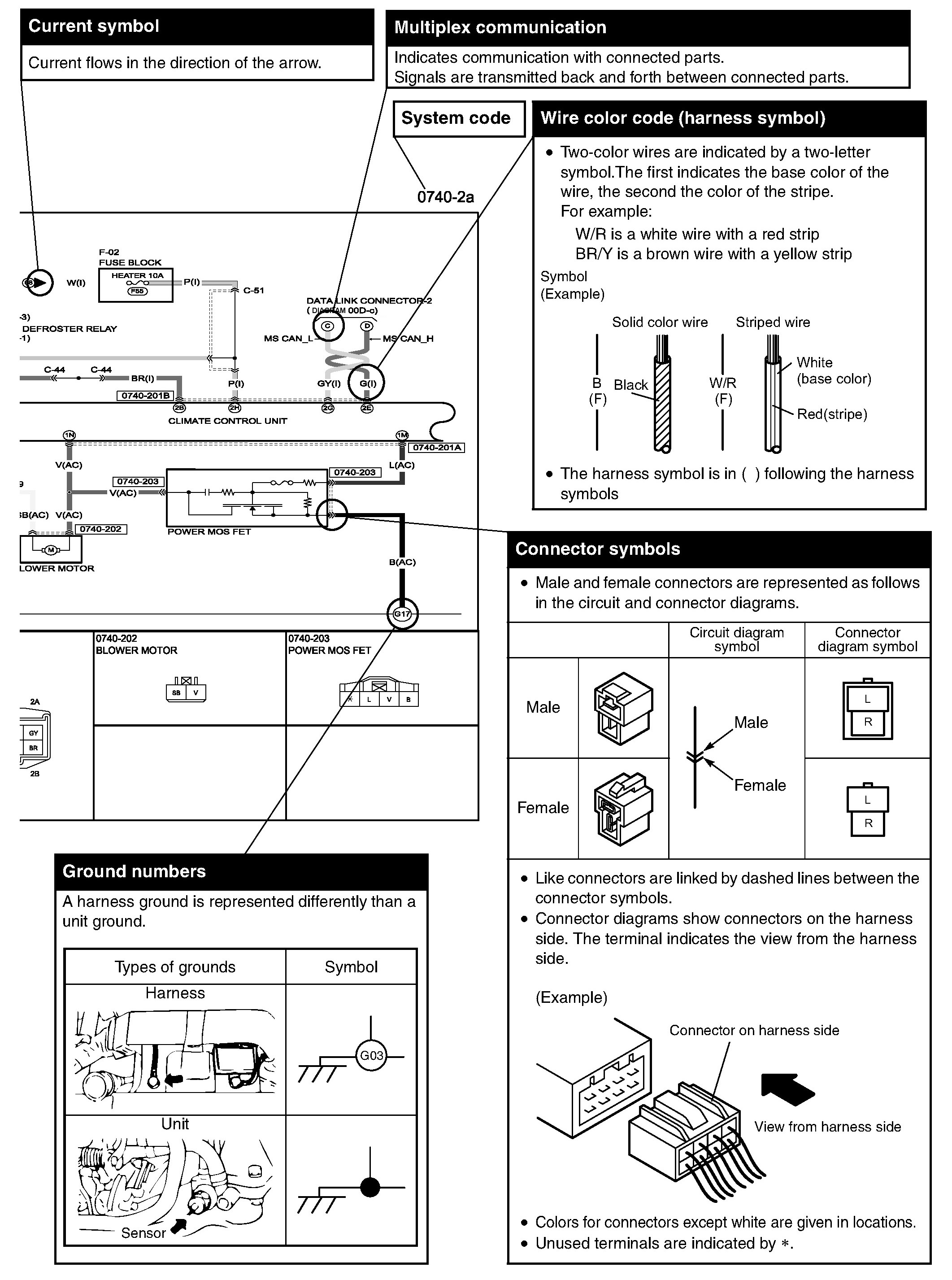SYSTEM CIRCUIT DIAGRAM/CONNECTOR DIAGRAM- These diagrams show the circuits for each system, from the power supply to the ground. The power supply side is on the upper part of the diagram, the ground side on the lower part. The diagrams describe circuits with the ignition switch off.