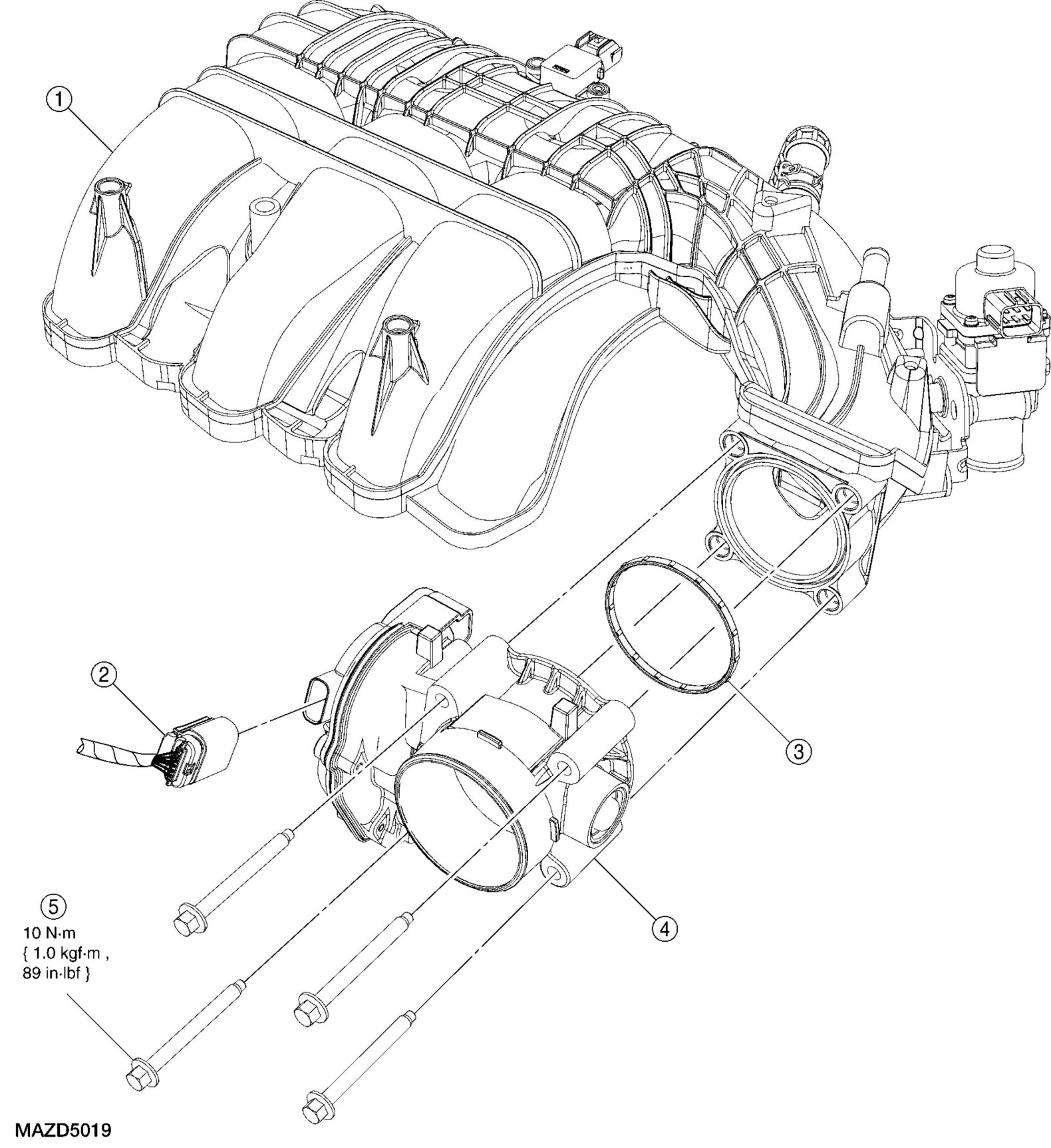 4. Remove the 4 bolts and the Throttle Body (TB). Discard the TB gasket.