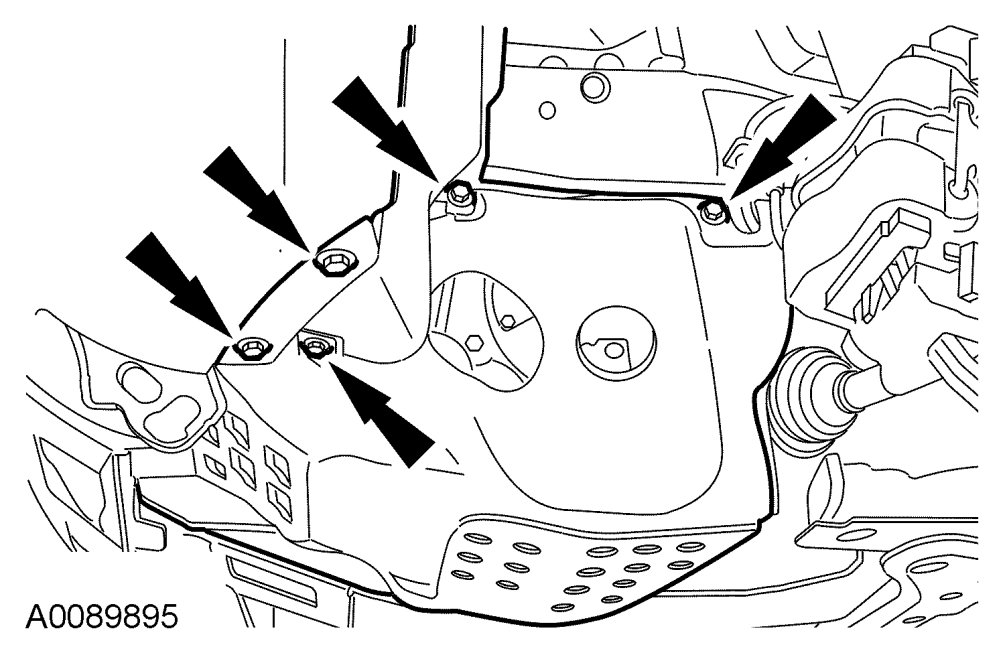 2. Remove the 7 bolts (5 shown) and the LH splash shield.
