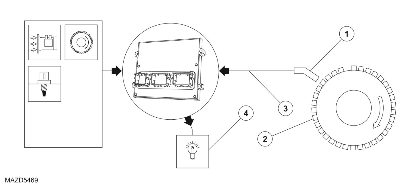 1. The PCM synchronized ignition spark is based on information received from the CKP sensor. The CKP signal generated is also the main input used in determining cylinder misfire.