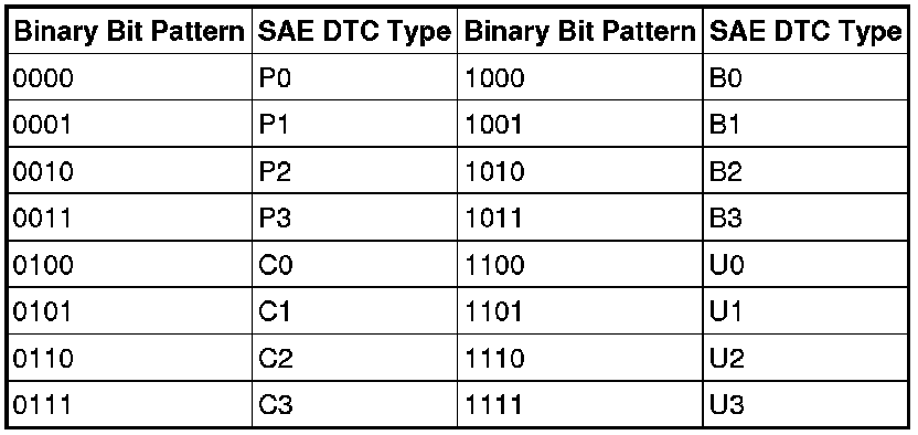 For example, DTC P0110:1C-AF means intake air temperature sensor circuit voltage out of range. The base DTC P0110, means intake air temperature circuit, while the failure-type byte 1C means circuit voltage out of range. This DTC structure was designed to allow manufactures to more precisely identify different kinds of faults without always having to define new DTC numbers.The PCM does not use failure-type bytes and always sends a failure-type byte of 00 (no sub-type information). This is because OBD II regulations require manufacturers to use 2 byte DTCs for generic scan tool communications. Additionally, the OBD II regulations require the 2 byte DTCs to be very specific, so there is no additional information that the failure-type byte could provide.A list of failure-type bytes is defined by SAE J2012 but is not described here because the PCM does not use the failure-type byte.