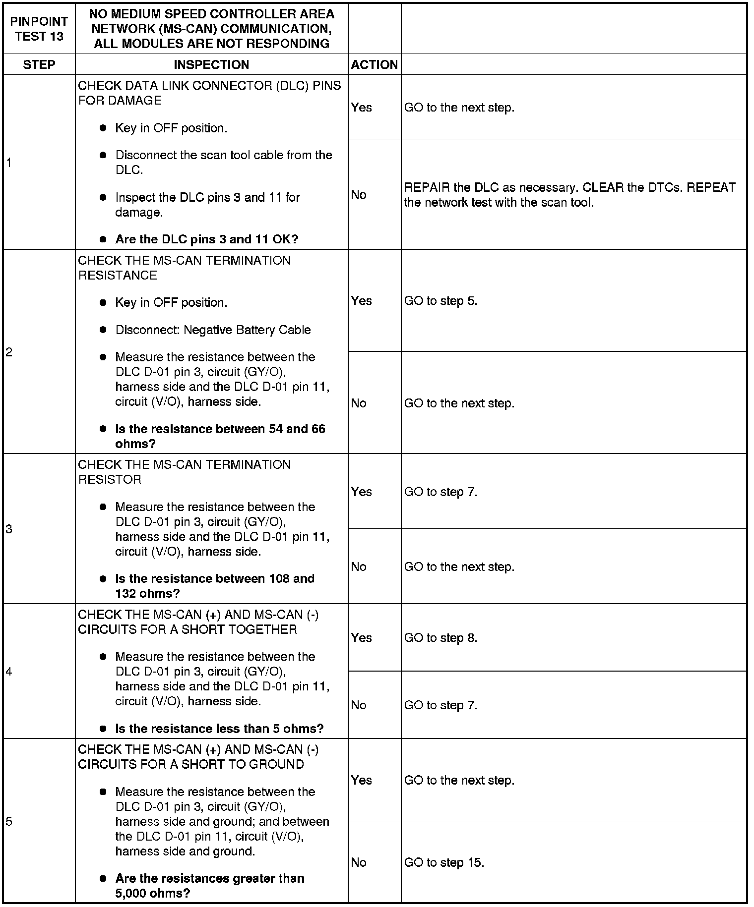 Pinpoint Test 13: No Medium Speed Controller Area Network (MS-CAN) Communication, All Modules Are Not Responding