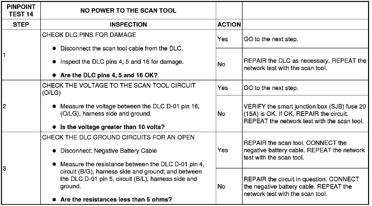 Pinpoint Test 14: No Power To The Scan Tool
