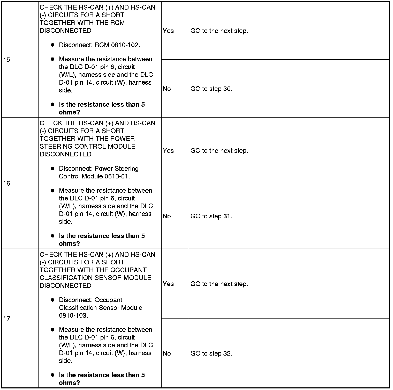 Pinpoint Test 16: No High Speed Controller Area Network (HS-CAN) Communication, All Modules Are Not Responding