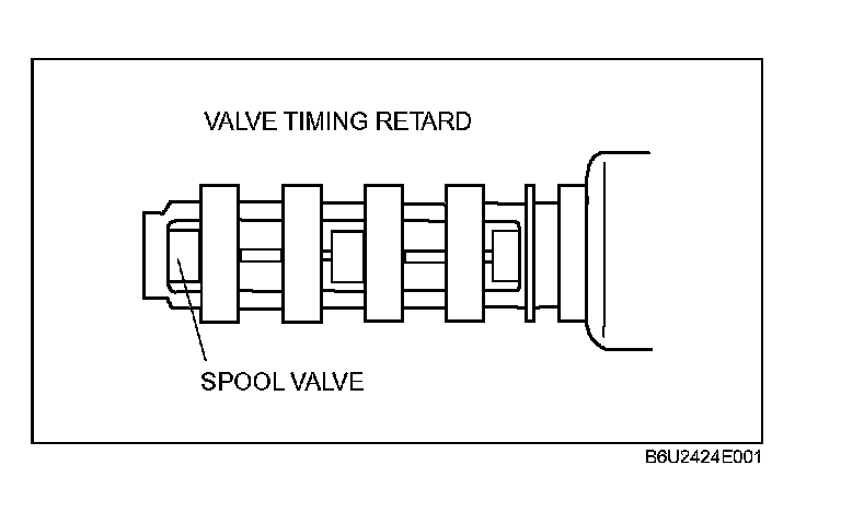 3. Verify that the spool valve in the oil control valve (OCV) is in the maximum valve timing retard position as indicated in the figure.