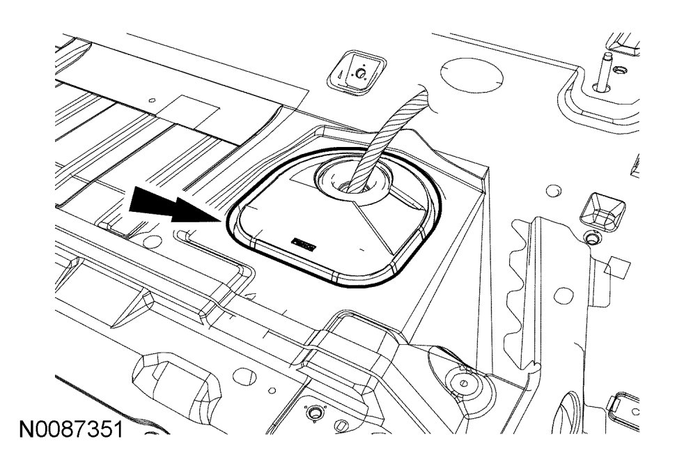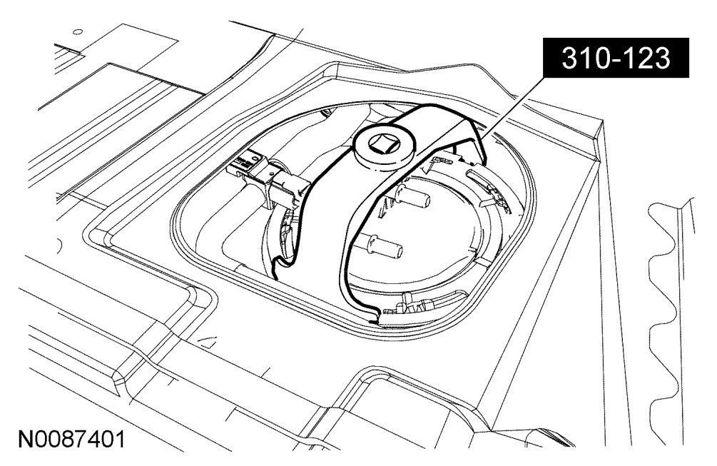 CAUTION:Carefully install the Fuel Tank Sender Unit Wrench to avoid damaging the Fuel Pump (FP) module when removing the lock ring.