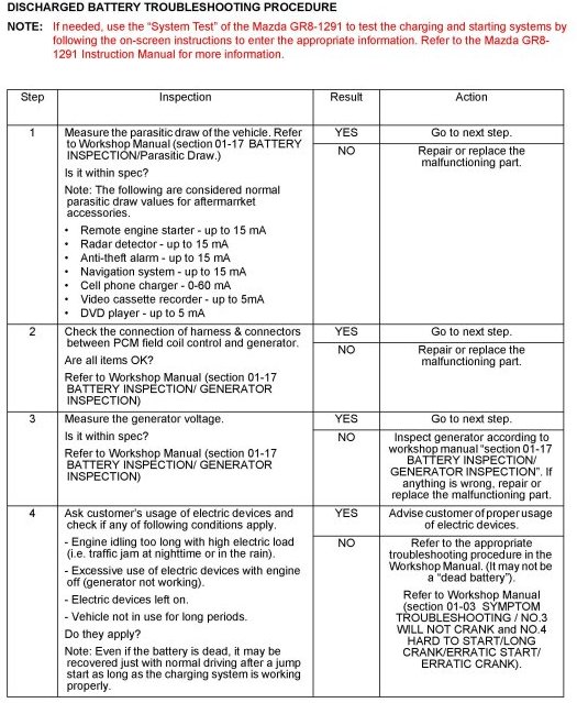 DISCHARGED BATTERY TROUBLESHOOTING PROCEDURE