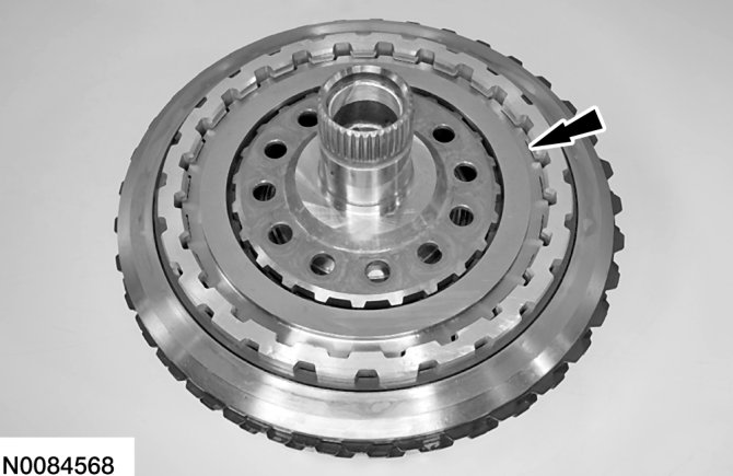 a. Slightly lift up on the direct (3, 5, R) clutch so that the snap ring floats freely.
