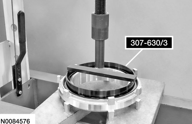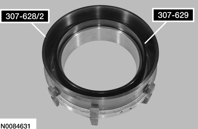 13. Position the forward (1, 2, 3, 4) clutch piston on Seal Protector 307-628/2 and Seal Protector 307-629 and push it down into the center support.