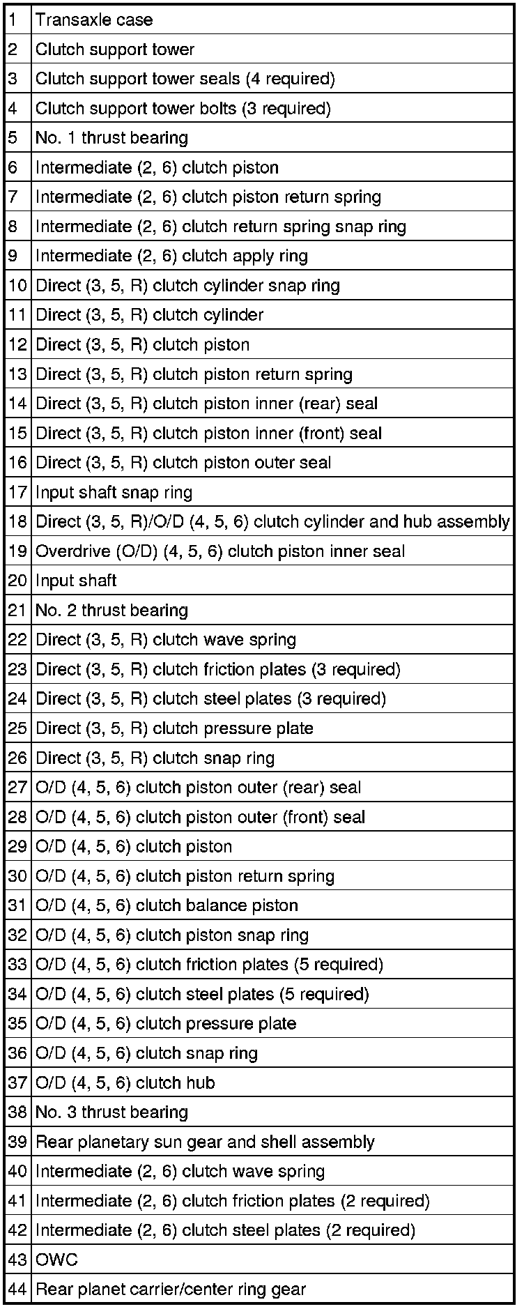 NOTE:When the intermediate (2, 6) clutch is correctly installed, a friction plate is on top.