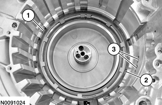 23. Install the intermediate (2, 6) clutch apply ring. Tap the ring in place using a suitable tool.