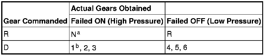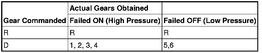 a Reverse is available if the solenoid circuit failed causing transaxle solenoid power control solenoid to remove voltage to all solenoids.Shift Solenoid C (SSC)